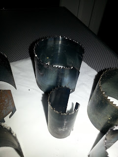 Whilst persevering using the spade bit - I suddenly remembered that I had bought a set of core cutting bits years ago - but the question was WHERE WERE THEY??????????? An hours or so later I found them in an old tool box way at the back of the shed. Note to self - sort out that shed in spring!!!!!