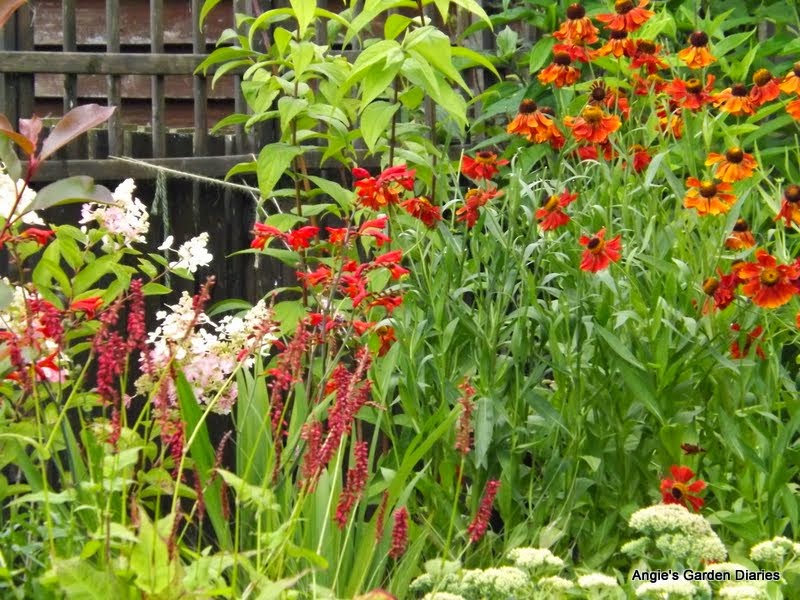 Yet more Persicaria, along with Crocosmia Lucifer and Helenium Moerheim Beauty providing for the pollinators. Interestingly I've seen very few butterflies. With the perfect summer last year and the even more perfect summer this year, I would have thought they'd be about in their droves this year. Alas, this is not the case.