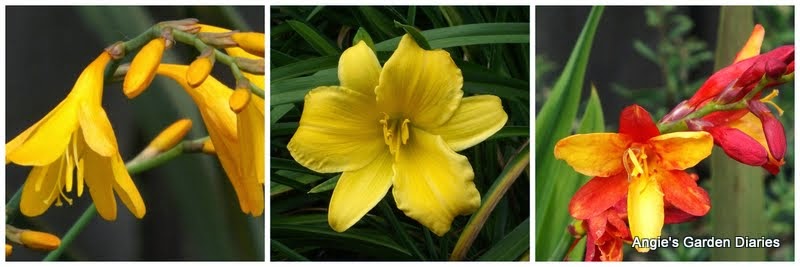 On the other hand, three plants flowering now that will fit in with my plans are a couple of Crocosmia and a dwarf daylily. The Crocosmia were corms given to me last year by a friend. The yellow is C. George Davidson and the bi-coloured one was supposed to be C. Emily Mckenzie but obviously not! I like it and it has a reprieve for now. The Daylily is one I've had for many years and long lost the label. It's a dwarf evergreen, so there's every possibility that it's H. Stella D'oro.