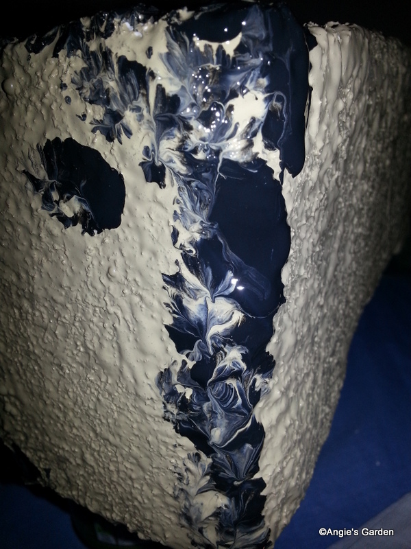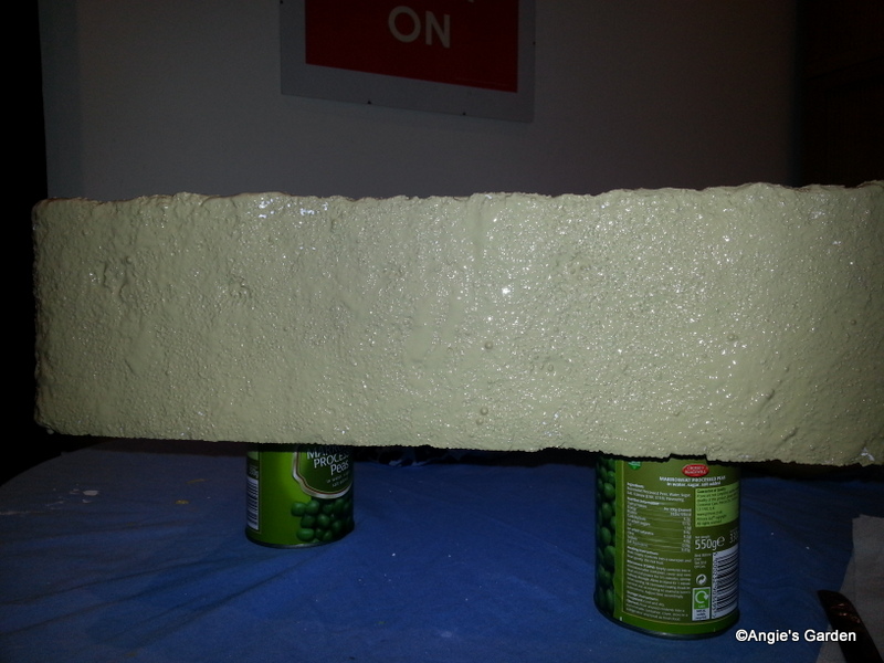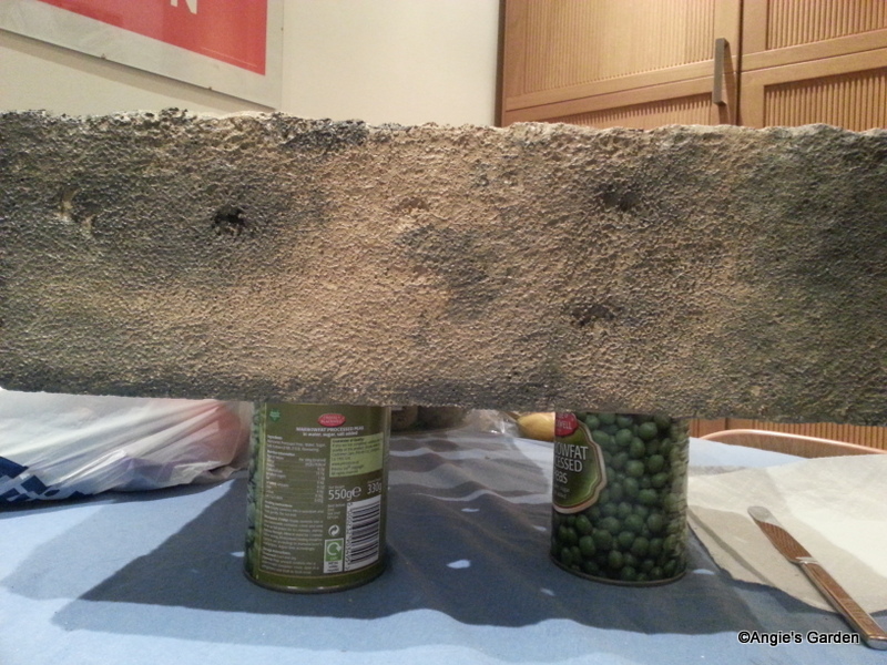 The whole thing was left too dry for a good few hours - the a dry soft paintbrush was then used to 'blend' the colours together to create a 'stone' effect.