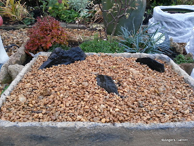 Plants in, watered and a few stones added for 'effect - the whole thing was mulched with another layer of alpine grit.